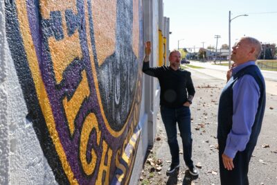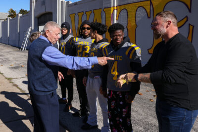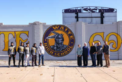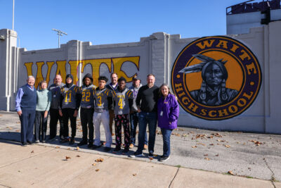 It was a picture-perfect day at Waite High School as students, mural artist Dean Davis, and philanthropists Dr. Tom and Betsy Brady came together to celebrate the stunning new updates at the school’s stadium.