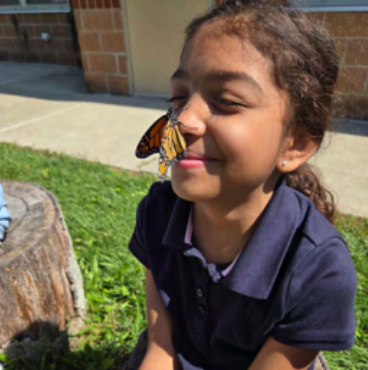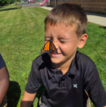 After weeks of studying the Monarch life cycle—from egg to caterpillar to chrysalis—students released their butterflies into the wild, even letting them rest briefly on their hands and shoulders before takeoff. Each Monarch was tagged for Monarch Watch, allowing students to track its migration journey south and contribute to real-world research.